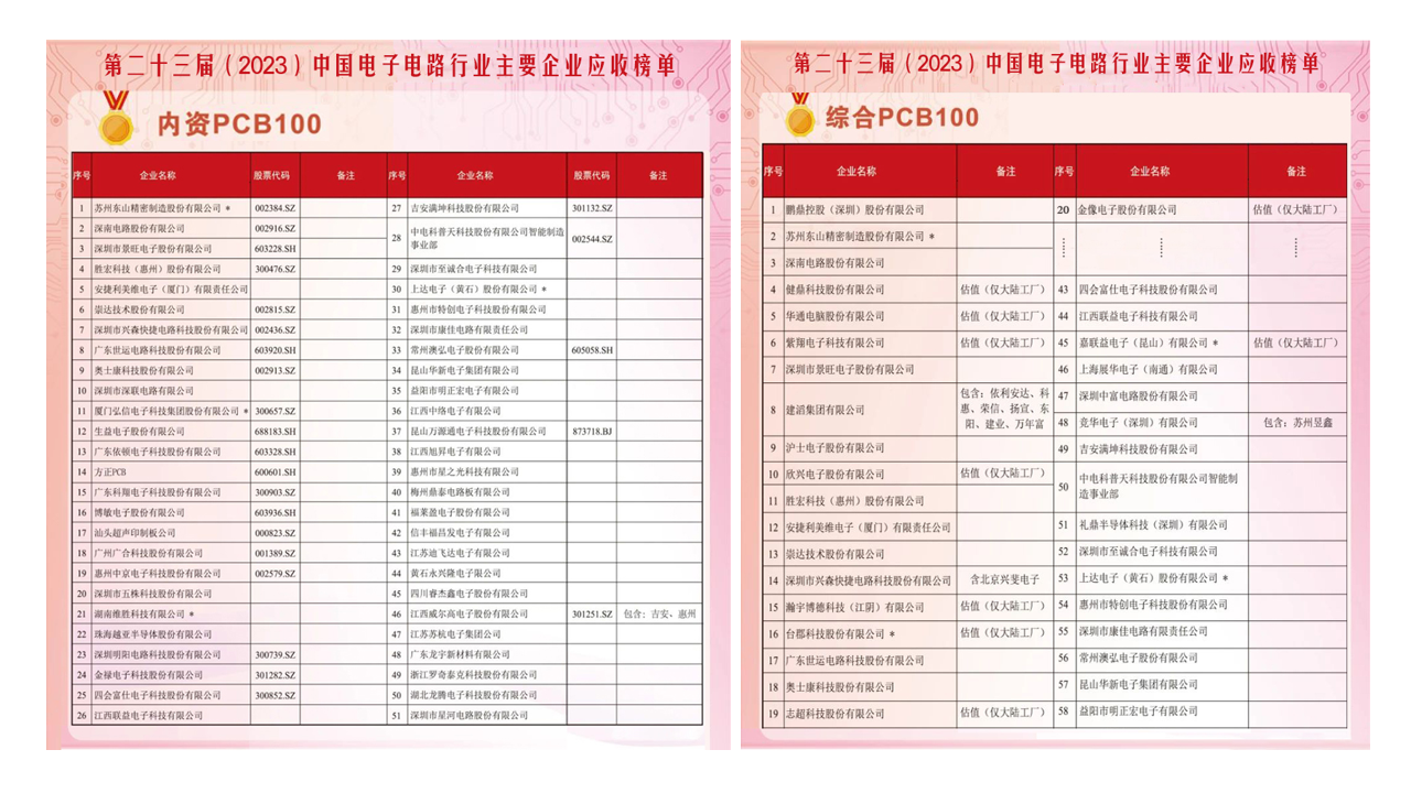 近期,中国电子电路行业协会(CPCA)正式发布了《第二十三届(2023)中国电子电路行业主要企业营收榜单》。星空游戏科技凭借稳健坚韧的市场表现与综合实力荣登2023年度内资PCB百强榜单第4名,同时在综合PCB排名中位列第11名。
